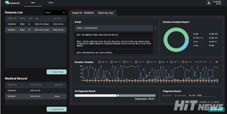환자의 면담 기록지를 인공지능 기술을 활용해 우울증 확률을 수치화해 의사의 우울증 진단을 보조하는 제품이다.