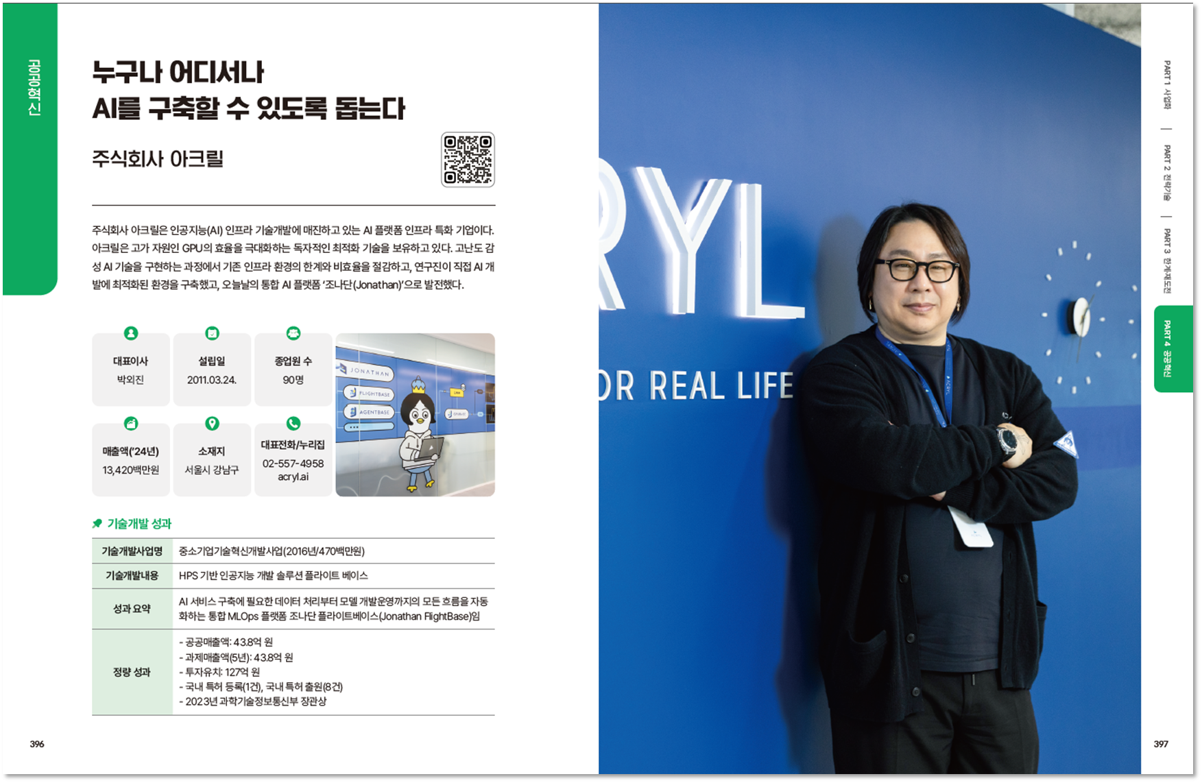 AI 전환을 돕고 있으며, 중소벤처기업부 혁신제품으로도 지정된 바 있다. 이번 선정은 R&D 성과를 기반으로 공공매출 43.8억 원과 투자유치 127억 원을 달성하고, 과학기술정보통신부 장관상 등 다수의 수상 실적을 쌓아온 아크릴의 기술력과 성장 가능성을 인정받은 결과로, 앞으로도 아크릴은 '누구나 어디서나 AI를 구축할 수 있는 환경'을 만드는 것을 목표로 지속적인 노력을